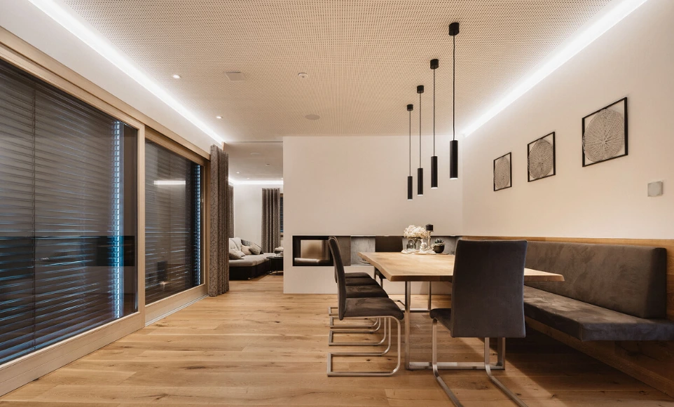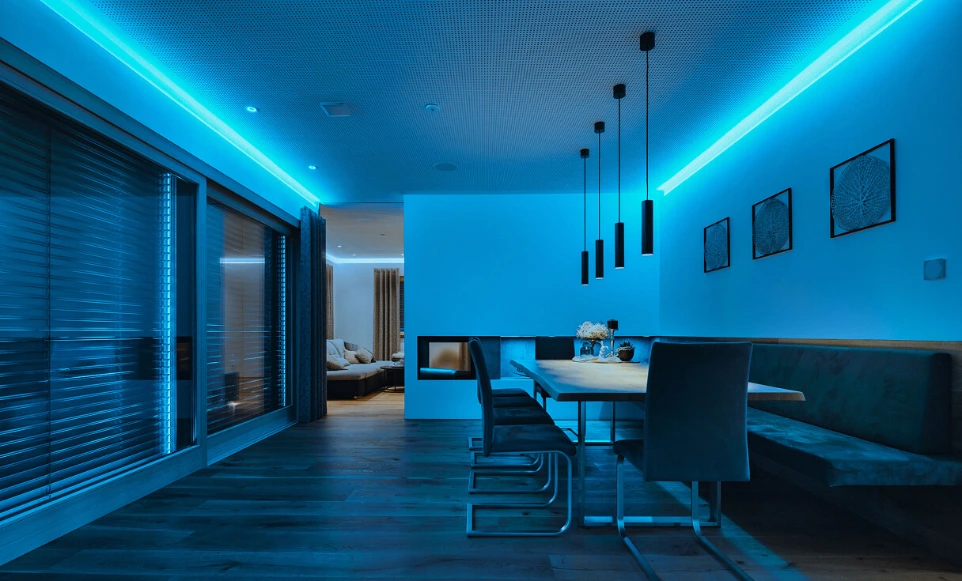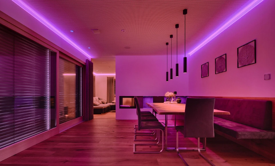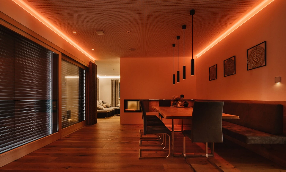 Osvetlitev ustvarja vzdušje! Kombinirajte luči, barve in dimmerje, da ustvarite prilagojeno osvetlitev. Brez programske opreme Loxone to ne bi bilo mogoče.