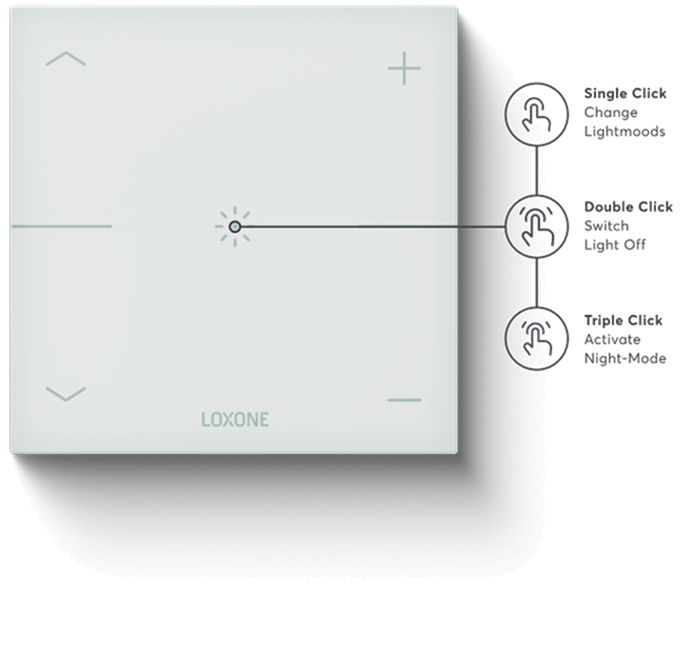Omogoča avtomatsko razsvetljavo s senzorji prisotnosti in nadzor razsvetljave prek aplikacije z enim ali več kliki z uporabo stikala Loxone Touch.
